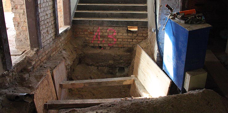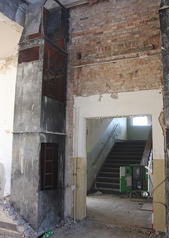 Im Dachgeschoss wurde außerdem zwei Schächte freigelegt, von denen wir bis jetzt nicht sagen können wofür diese eigentlich da waren. Spannend darin ist, dass sie außerdem Türen und Leitern besitzen. In den unteren Geschossen wurden die Schächte anscheinend schon früher abgerissen.