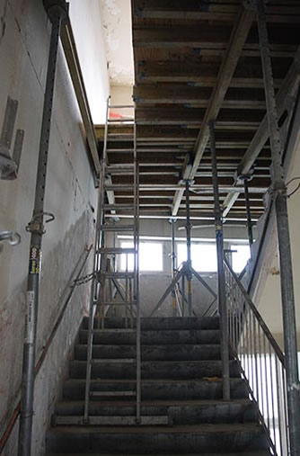 Im Souterrain sind die neuen Trassen für die Stromkabel verlegt worden und die Abdichtung ist fertiggestellt. Außerdem wurden die Brüstungen neu gemauert.