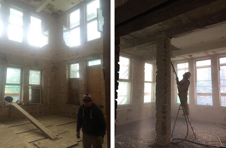 Die Arbeiten am Dach gehen voran. Der Abriss ist fertig. Auf einer Seite wurde das Betondach abgeschliffen und mit Arbeiten an der ersten Abdichtungsebene wurde begonnen. Dies ist die Vorbereitung für die folgende Dämmung.