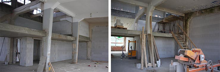 Wie in den Bildern zu sehen ist, wurden die neu entstandenen Räume beräumt um die nächsten Arbeitsschritte zu ermöglichen.