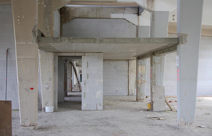 Geht man heute durchs Zentralwerk sieht man überall frisch gemauerte Stellen. Brüstungen, Innenwandelemente, Löcher in den Wänden.