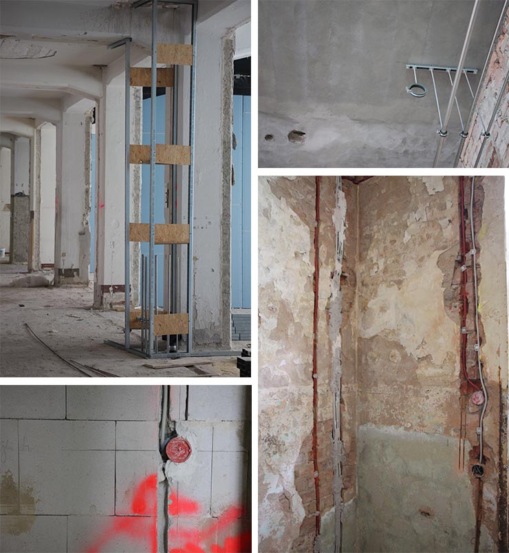 Nachdem die Löcher in den Decken für die Steiger schon länger vorhanden sind, werden diese nun mit den entsprechenden Medien bestückt.